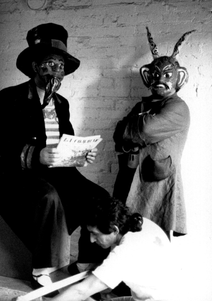 Performers/Musicians: Enrique Rivas, Edgar Acevedo, Manuel Alberto, Oscar Cruz. A collective creation, written and directed by Lina de Guevara. Props and Masks: Maureen Mackintosh, Stage Manager: Milú Gelbort